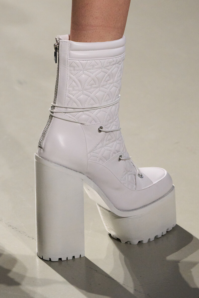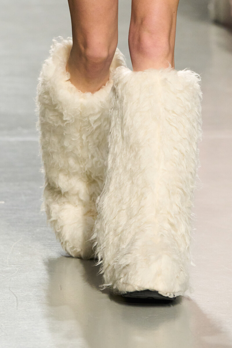 除了前面所说的泰迪熊雪靴,本季秀上还有其他必须关注的配件,包含超高跟厚底皮靴、偌大的logo腰封扣等。品牌更把印花製成超大布包,外出小旅行好装之余,极为亮眼的花色为日常穿搭打造多彩亮点。