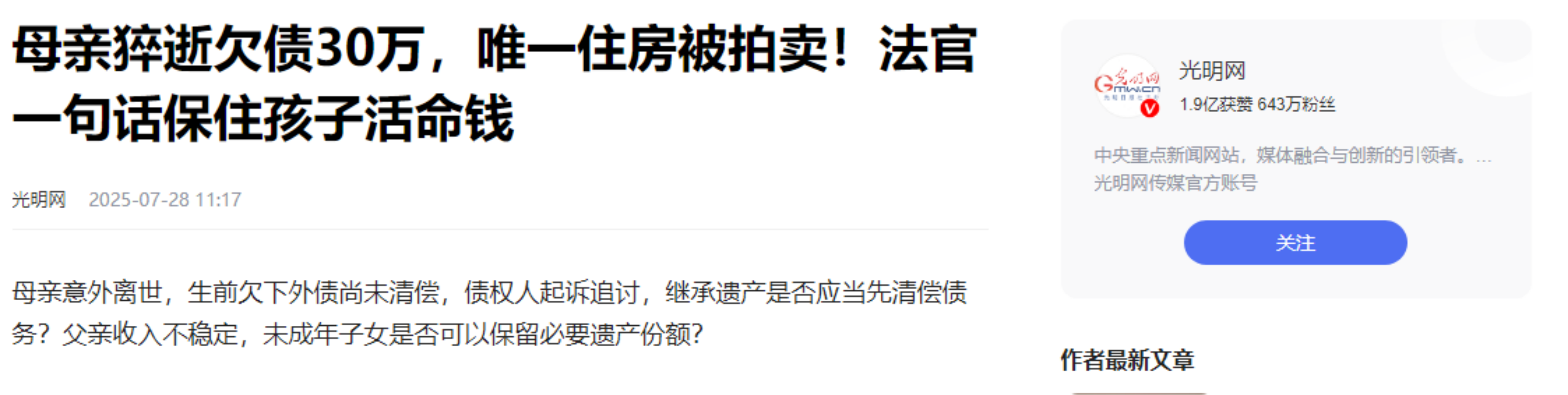 只是,为了还这20万,吴女士的丈夫也只能找时间将房子卖掉,一家人可能要租房子生活,原本就不富裕的家庭更加雪上加霜,唯一值得欣慰的是法院给了两个孩子活下去的机会。