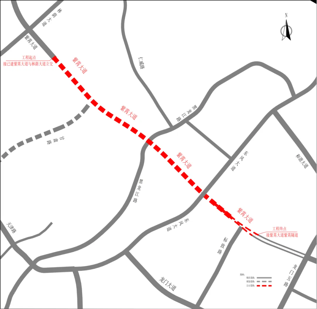 紫霄大道连接线道路工程规划方案示意图。(图源:十堰市自然资源和城乡建设局)